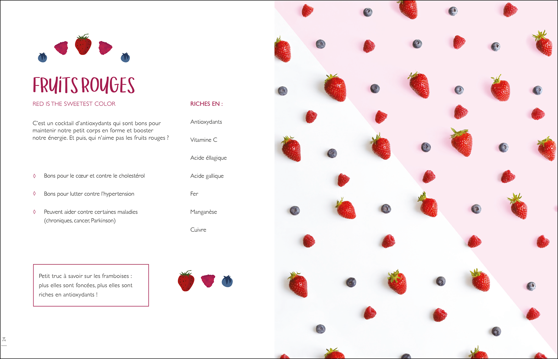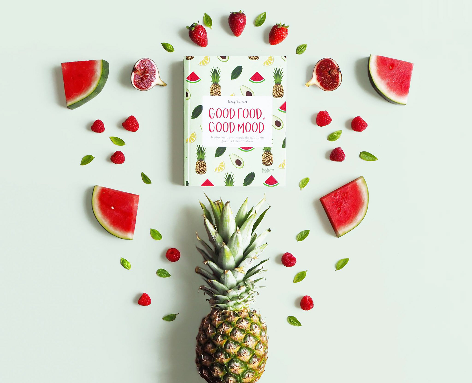 This is my cookbook published in August 2017 by Hachette. It's about how food can influence our moods and how we can choose to feel less stress (for example) by choosing what we put in our plates. Good Food, Good Mood is 272 pages long, all illustrated, photographed and layout by me.