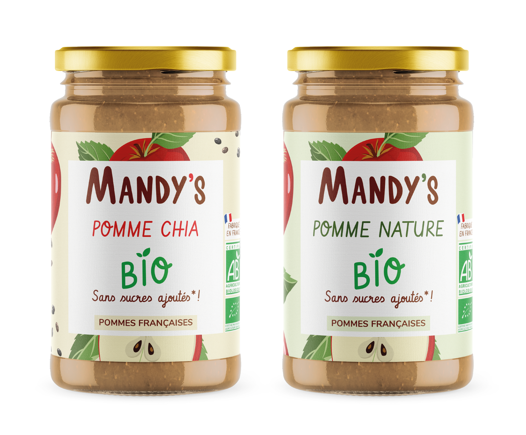 Packaging et identité visuelle pour Mandy's, une marque bio, naturelle et délicieuse.