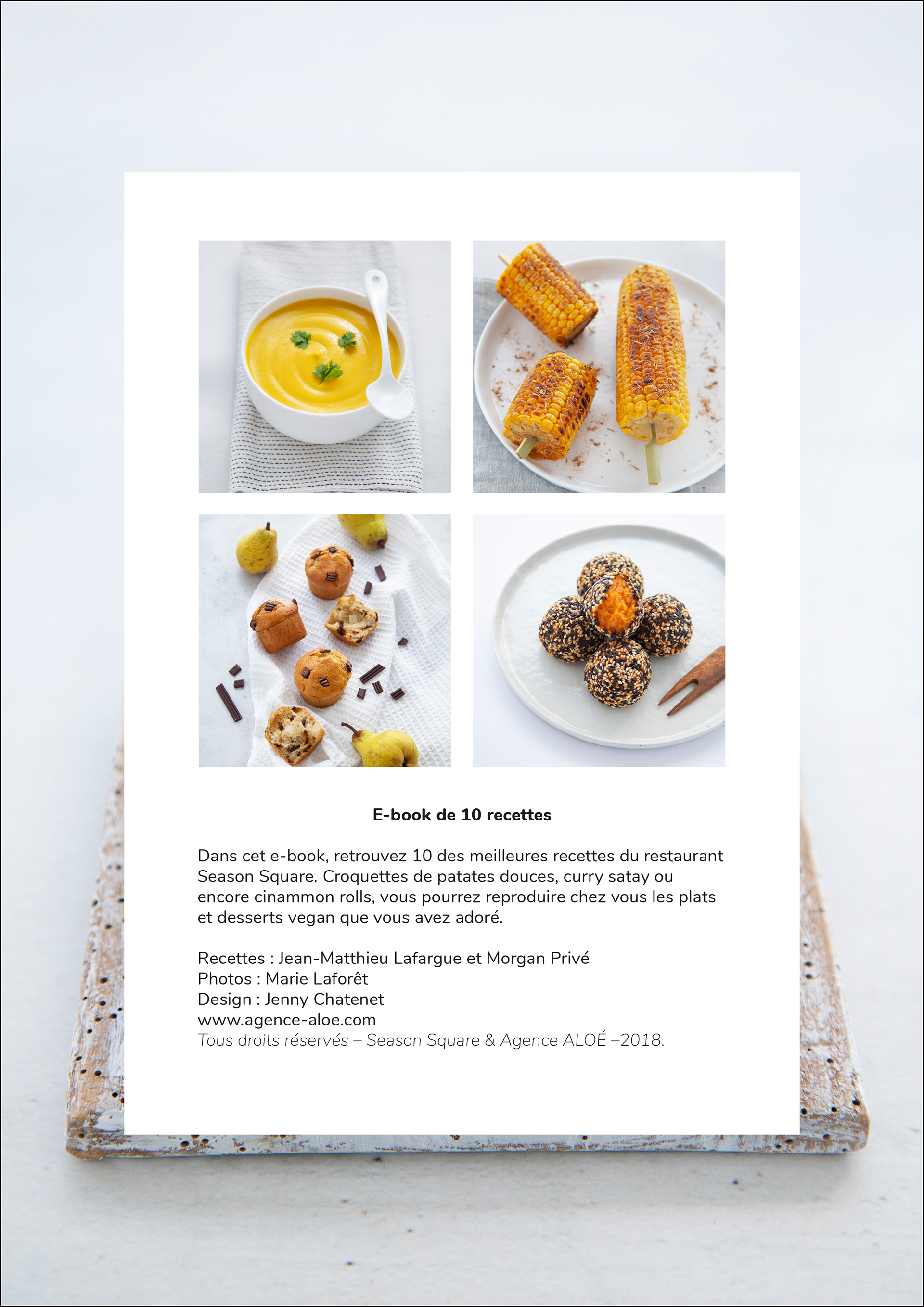 Mise en page d’un e-book pour Season Square, un restaurant 100% végétale à Paris.